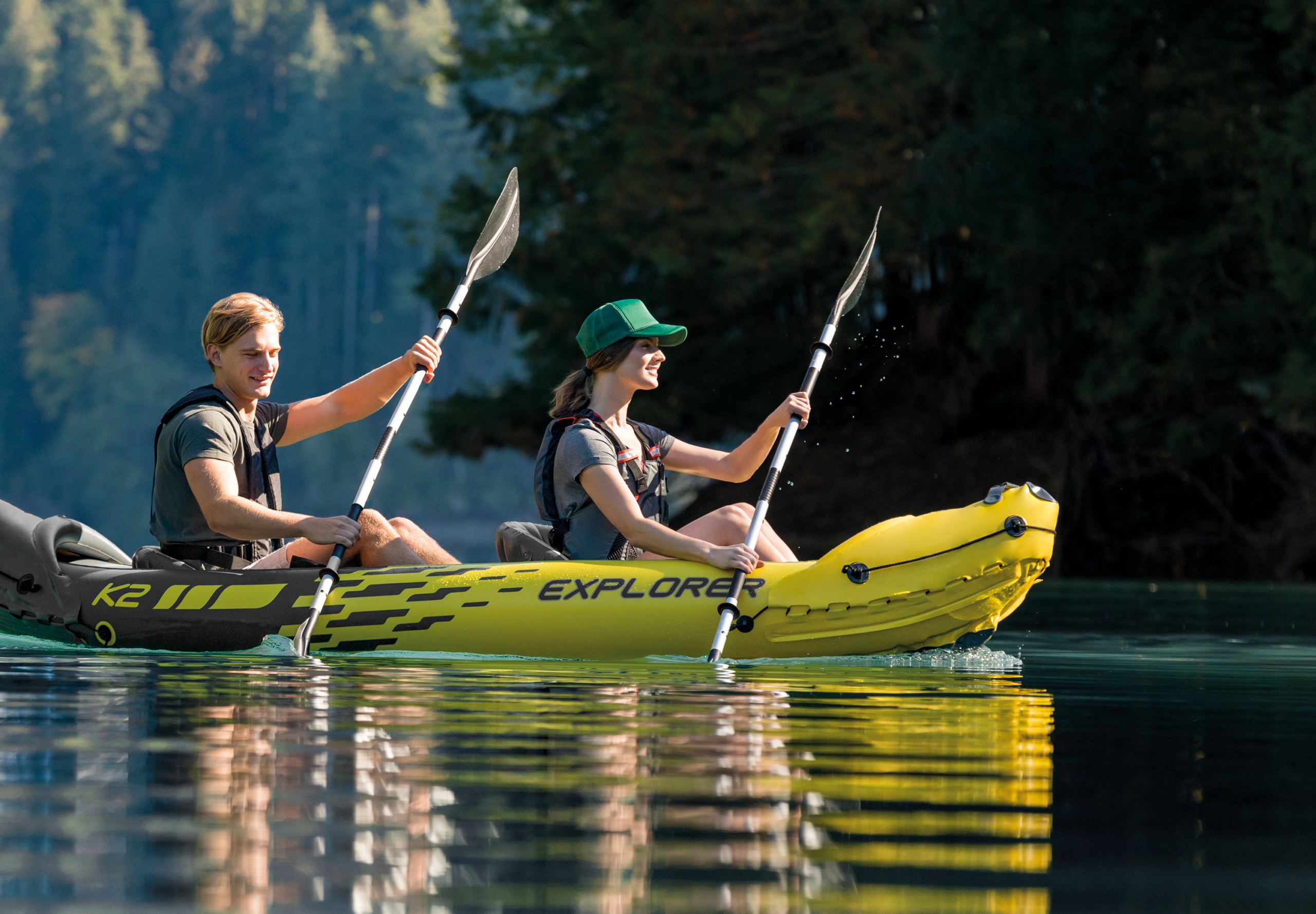 68307 Explorer K2 Inflatable Kayak Set: Includes Deluxe 86in Aluminum Oars and High-Output Pump